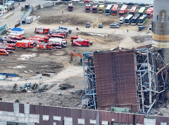 울산화력발전소 붕괴 사고가 발생한지 일주일이 지난 가운데, 매몰자 7명 가운데 2명이 아직 구조되지 못했다.12일 소방당국은 이을 구조하는 작업에 집중하고 있다. 매몰자 가운데 1명은 위치가 파악됐고, 나머지 1명은 위치를 알 수 없는 상태다.이날 작업은 대형 크레인으로 5호기의 상부 철 구조물을 먼저 고정한 채, 밑에서 구조대원들이 구조·수색을 진행하는 방식으로