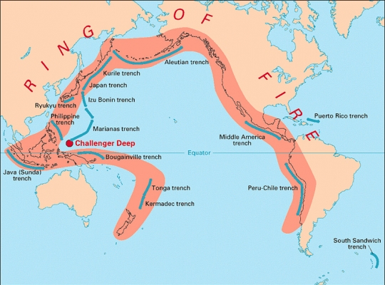 '불의 고리(Ring of Fire)'라고 불리는 환태평양 지진대가 10월들어 연달아 지진이 발생하는 등 심상찮은 조짐을 보이고 있다.필리핀 세부 북북동쪽 해역에