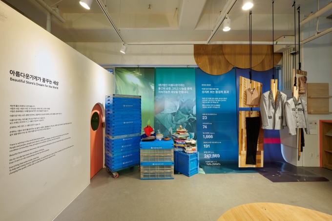 아름다운가게의 자원순환 전시 '그물코프로젝트 2025' 개막식은 17일 서울 성수동 헬로우뮤지엄에서 열렸다. 그물코 프로젝트는 씨실과 날실이 연결돼 함께 살아간다는 뜻의 '그물코 정신'을 담아 관계의 회복, 순환의 미학, 지속가능한 삶을 그린 전시다. 특히 올해 전시는 아름다운가게 창립 23주년을 맞아 '좋은 지구 되세요(Have a nice earth)'를 주제로 담았다.