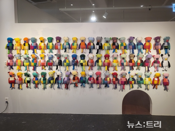 이 가운데 단절된 마음이 이어지기를 바라는 마음을 담아 만들었다는 '괜찮아 꾸뛰르 땀땀'은 팔다리 길이까지 제각기 다른 형형색색의 곰인형들이 가득 모인 작품이다. 똑같은 인형이 하나도 없는 것처럼, 사람도 제각기 다르다는 것이다. 관람객은 마음에 드는 인형을 하나 골라 옆에 마련된 포토존에서 사진도 찍을 수 있는데, 김 작가는 "대체로 자신과 닮은 인형을 고르는 경향이 있다"며 웃었다. 인형은 모두 손바느질로 만들어졌으며 아이를 키우는 경력보유여성들이 작업했다고 한다. 김 작가는 "방문객들로 하여금 이번 전시의 경험이 작은 실 한 올로라도 남아 그물코를 이어가주길 바란다"고 말했다.