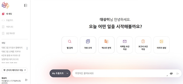 대상그룹이 자체 인공지능(AI) 플랫폼을 전사에 도입하며 업무효율을 극대화하고 AI 중심 전환(AX)을 본격화한다고 23일 밝혔다. 그룹 차원의 AI 도입을 통해 일하는 방식의 혁신을 이끌고, 미래 경쟁력 강화를 위한 디지털 대전환의 속도를 높이겠다는 구상이다.