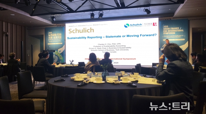 6일 서울 삼성동 웨스틴서울 파르나스에서 '녹색금융 시장의 확대와 다변화'를 주제로 열린 '2025 녹색금융/ESG 국제 심포지엄'에 참석한 전세계 전문가들은 기후 및 생물다양성 금융시장, 녹색분류체계와 전환금융, 인공지능(AI) 기술과의 융합 등 여러 영역에 걸쳐 지속가능하고 회복력 있는 사회와 비즈니스 실현을 위한 녹색금융에 대해 논의했다. 인하대학교 녹색금융대학원이 주최한 이 심포지엄은 지속가능경영연구소(SMRI)와 SDG연구소가 주관하며, 뉴스트리와 포스코 등이 후원했다.