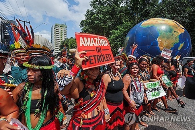 ▲브라질 벨렝에서 시위하고 있는 원주민들 (사진=AP 연합뉴스)