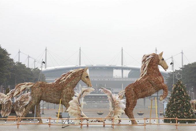 ▲월드컵공원 유니세프광장에 전시된 억새풀 작품 (사진=서울시)