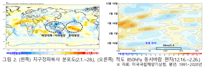 현재 중앙·동부 적도 태평양의 해수면 온도는 라니냐 수준에서 점차 벗어나고 있으며, 해저의 따뜻한 수온이 동쪽으로 이동하면서 표층 수온도 상승 조짐을 보이고 있다. 다만 남방진동지수(SOI)는 1월 기준 +9.9를 기록해 여전히 라니냐 범위에 머물러 있어, 약한 라니냐가 완전히 종료됐다고 단정하긴 이르다.