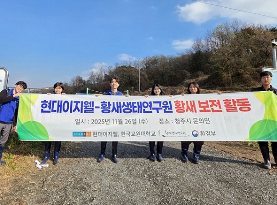 현대백화점그룹 계열 토탈복지솔루션기업 현대이지웰은 지난 26일 충청북도 청주시 문의면 일대에서 황새 서식지 보전을 위한 무논 조성 활동을 전개