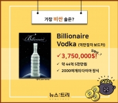 가장 비싼 술은 'Billionaire Vodka'. 일명 '억만장자 보드카'다. 가격은 3,750,000달러, 우리 돈으로 약 44억5000만원이다. 술 1병 가격이 서울의 노른자위 아파트 가격보다 훨씬 비싸다. 술값이 이렇게 비싼 이유는 장식품으로 사용된 2000여개의 다이아몬드 때문이 아닐까.