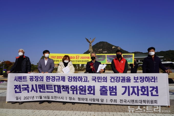 전국시멘트대책위원회(전시대)는 16일 청와대 사랑채 앞에서 열린 기자회견에서 최근 2050 탄소중립위원회(위원장 김부겸 국무총리·윤순진 서울대 교수, 탄중위)가 유연탄을 폐합성수지로 대체하겠다는 계획에 대해 "탄소중립을 핑계 삼아 더 많은 이득을 취하기 위한 시멘트 공장의 숙원사업을 이뤄준 것에 불과한 계획"이라며 "정부가 국민을 병들게 하고 있다"며 강하게 비판했다.