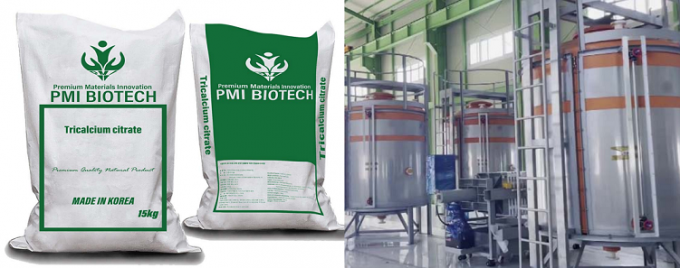 굴 껍데기를 녹이면서 발생한 이산화탄소는 포집해 정제작업을 거친 칼슘과 반응시킨다. 이렇게 하면 순도 99.5%의 '시약급' 탄산칼슘이 만들어진다. 순도 97.5%인 독일 화학기업 바스프(BASF)의 탄산칼슘 제품보다 순도가 더 높다. 바스프는 암석을 소성로에서 태워 탄산칼슘을 추출하기 때문에 이산화탄소가 발생하지만, PMI바이오텍은 이산화탄소를 99% 저감할 수 있다. 1kg당 단가도 바스프의 70% 수준으로 저렴하다.