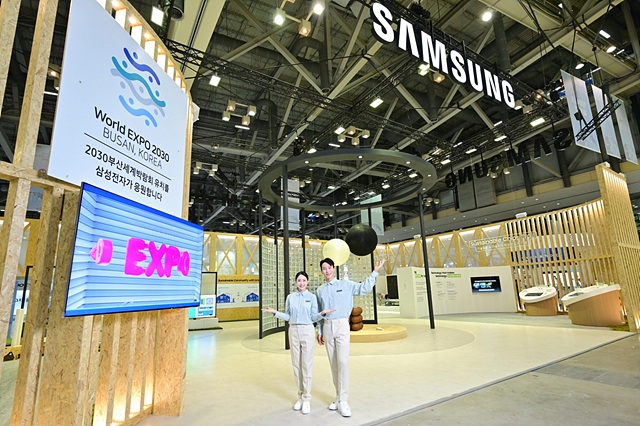 삼성전자와 삼성SDI는 '지속가능한 일상'(Everyday Sustainability)을 주제로 삼성홍보관을 마련해 △에너지 가치를 높이는 제품 △기술을 지속가능하게 하는 반도체 △환경가치를 창출하는 배터리 기술을 소개하고 있다. 특히 부스는 지난 4월 열린 '2023 월드IT쇼'에서 사용했던 재활용 나무합판 등의 구조물과 폐섬유 패널과 폐플라스틱 판재 등으로 만들었다.
