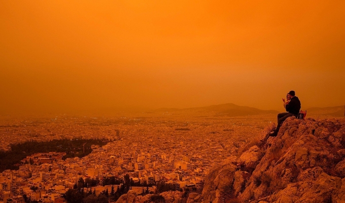 사하라 사막에서 불어온 먼지폭풍이 23일(현지시간) 아테네를 비롯한 그리스 도시들을 집어삼켰다.