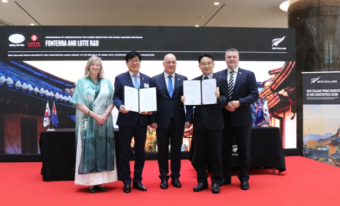 롯데중앙연구소는 서울시 마곡동에 위치한 롯데중앙연구소 본사에서 폰테라와 업무협약(MOU)을 체결했다고 5일 밝혔다. 이번 체결식에는 크리스토퍼 럭슨 뉴질랜드 총리를 비롯해 멜리사 리 뉴질랜드 경제개발 장관, 니콜라 그릭 뉴질랜드 무역국무 장관, 돈 베넷 주한 뉴질랜드 대사, 마일스 허렐 폰테라 최고경영자(CEO), 김천일 폰테라 한국 지사장, 이경훤 롯데중앙연구소장, 뉴질랜드 경제 사절단 등이 참석했다.