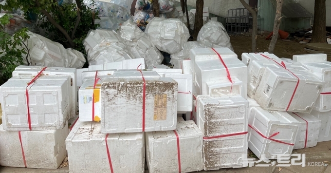 ▲서울의 한 아파트에서 분리배출된 스티로폼들 ©newstree