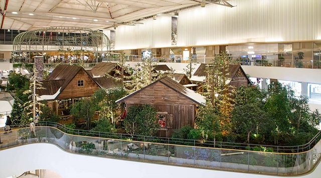 'H 빌리지'를 둘러싸고 있는 숲에는 8m 높이의 대형트리를 비롯해 약 100그루의 생목이 조성돼 있다. 숲속 곳곳에 설치된 동물 키네틱 오브제가 생동감을 더했다. 마을 입구에 들어서면 포근한 분위기의 산타의 집이 먼저 보인다. 집 내부는 화려한 크리스마스 트리와 벽난로, 움직이는 강아지와 다람쥐, 오래된 서적과 사진 등을 배치해 따뜻한 분위기를 연출했다. 오두막은 은은한 조명과 어울어져 정말 산타가 살고 있는 듯한 착각이 들 정도였다.