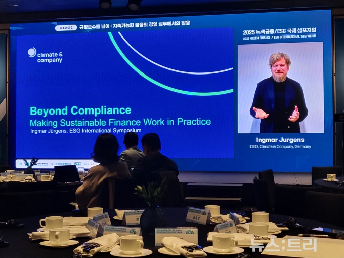 6일 서울 삼성동 웨스틴서울 파르나스에서 '녹색금융 시장의 확대와 다변화'를 주제로 열린 '2025 녹색금융/ESG 국제 심포지엄'에 참석한 전세계 전문가들은 기후 및 생물다양성 금융시장, 녹색분류체계와 전환금융, 인공지능(AI) 기술과의 융합 등 여러 영역에 걸쳐 지속가능하고 회복력 있는 사회와 비즈니스 실현을 위한 녹색금융에 대해 논의했다. 인하대학교 녹색금융대학원이 주최한 이 심포지엄은 지속가능경영연구소(SMRI)와 SDG연구소가 주관하며, 뉴스트리와 포스코 등이 후원했다.