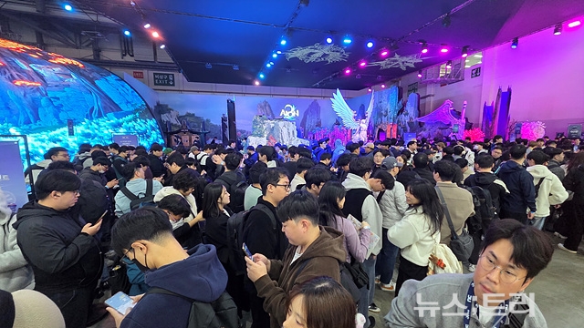 ▲'아이온2' 시연 시작 10분만에 대기줄이 3시간으로 길어졌다. ⓒnewstree