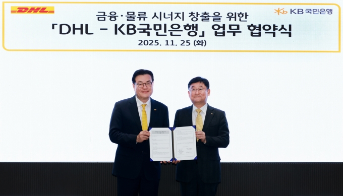KB국민은행은 DHL코리아와 '금융·물류 시너지 창출을 위한 업무협약(MOU)'을 체결했다고 28일 밝혔다. 이번 협약으로 두 회사는 각자 금융과 물류 분야의 전문성을 바탕으로 수출입 기업 비즈니스를 지원하기 위한 다양한 협업을 추진한다.