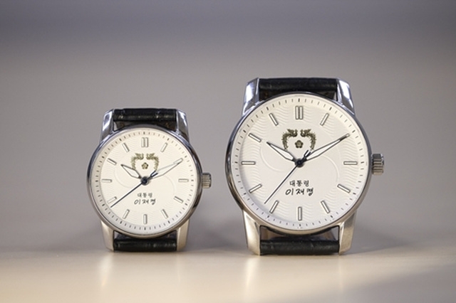 전통적인 대통령 손목시계와 마찬가지로 앞면에는 대통령 휘장과 함께 이 대통령의 서명이 들어갔으며, 시계판 바탕에는 태극 문양이 새겨졌다. 시계 뒷면에는 이 대통령의 자필 글씨체로 '국민이 주인인 나라'라는 문구가 각인됐다.