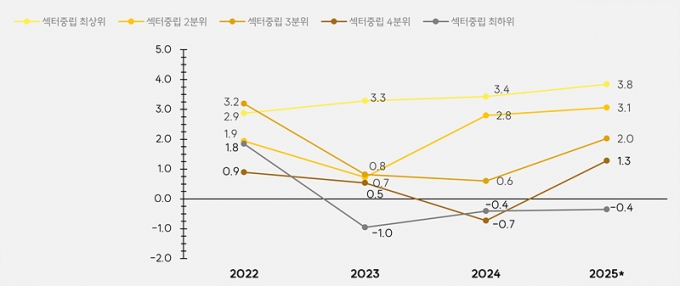 서스틴베스트는 동일 섹터에 속한 평가 대상 기업을 ESG 점수 기준으로 5분위로 나눈 뒤 각 그룹의 차년도 총자산수익률(ROA)을 비교했다. 그 결과, 2022년~2025년까지 4년간 ESG 점수 최상위 그룹의 평균 ROA는 3.4%로, 최하위 그룹 평균인 0.0%를 3.4%포인트 상회했다. ESG 점수와 ROA간 연관성은 최근으로 갈수록 더욱 뚜렷해지는 추세를 보였다.