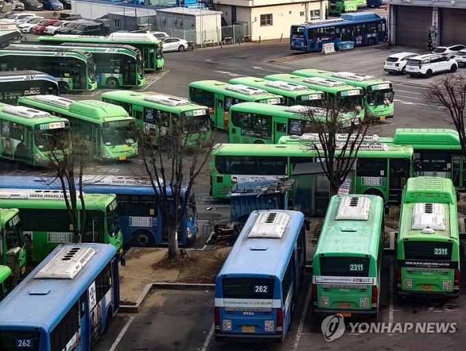 ▲서울의 한 버스공영차고지에 시내버스들이 주차되어 있다. (사진=연합뉴스)