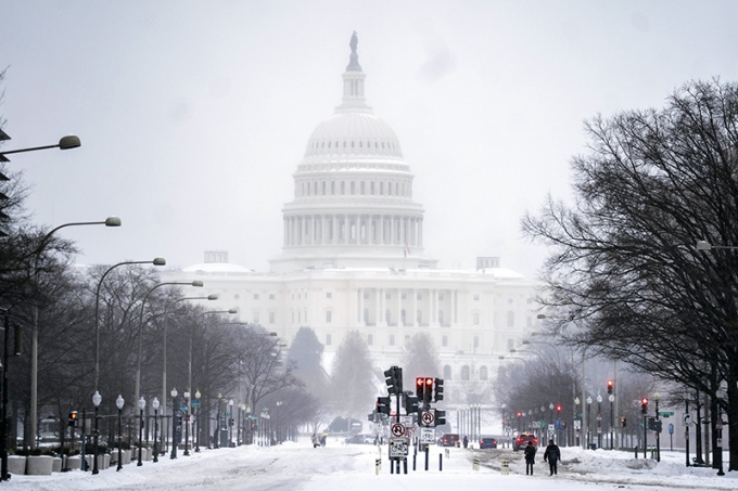 ▲25일 눈폭풍에 휩싸인 미국 국회의사당 (사진=UPI연합뉴스)