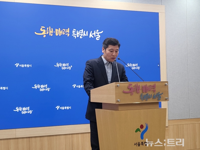 ▲한정훈 서울시 교통운영관이 6일 시청에서 브리핑을 진행하고 있다. ©newstree