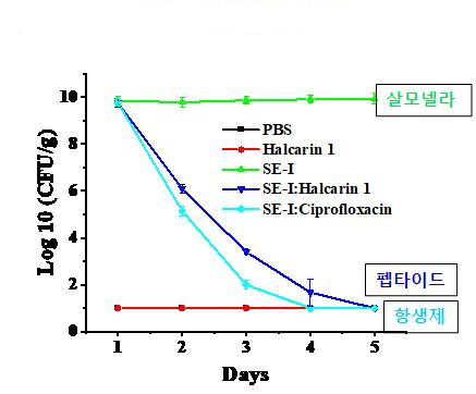 이번 연구결과는 AI로 찾아낸 펩타이드가 살모넬라 감염으로 인한 장 염증을 효과적으로 완화하는 것을 확인했으며, 염증 유발 물질의 분비를 조절하고 장 점막도 보호하는 것으로 나타났다. 이로 인해 살모넬라 균에 의한 장질환 감소율은 기존 항생제인 키프로플록사신의 87.78%보다 높은 89.17%로 나타났다.