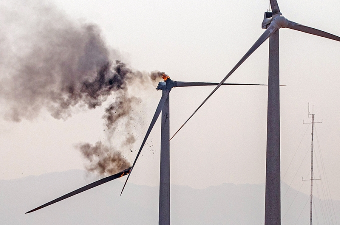 경북 영덕 풍력발전단지에서 발생한 화재가 이틀째 이어지고 있다. 한달전 엿가락처럼 휘어지면서 파손사고가 발생했던 풍력발전기에서 이번에는 불이 나고 사망사고까지 발생한 것이다.