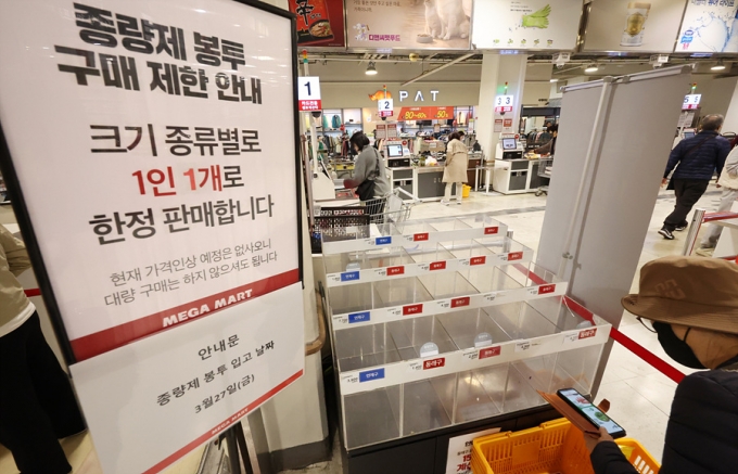 27일 서울 강남에 있는 한 마트 관계자는 "1인당 최대 10장씩 구매하도록 제한했는데, 물량이 오전에 모두 동났다"며 "지금은 50ℓ, 70ℓ 대용량 봉투밖에 없다"고 말했다. 소셜서비스(SNS)에서는 "마트를 여러 곳 돌아도 살 수 없었다", "한번에 살 수 있는 양을 제한한 곳이 많아 많이 못구했다"며 종량제 봉투를 못구했다고 하소연하는 글이 쇄도하고 있다.
