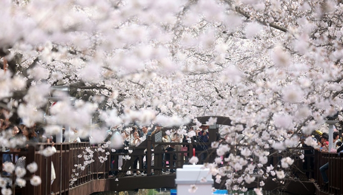 ▲29일 오후 경남 창원시 진해구 여좌천에 벚꽃이 만발해있다. 이곳에서 국내 최대 봄꽃 축제 '진해군항제'가 열리고 있다. (사진=연합뉴스)