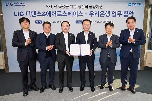 우리은행은 지난 14일 서울 중구 본점에서 LIG 디펜스&에어로스페이스(이하 LIG D&A)와 'K-방산 육성을 위한 생산적 금융 지원 업무협약'을 체결했다고 15일 밝혔다.